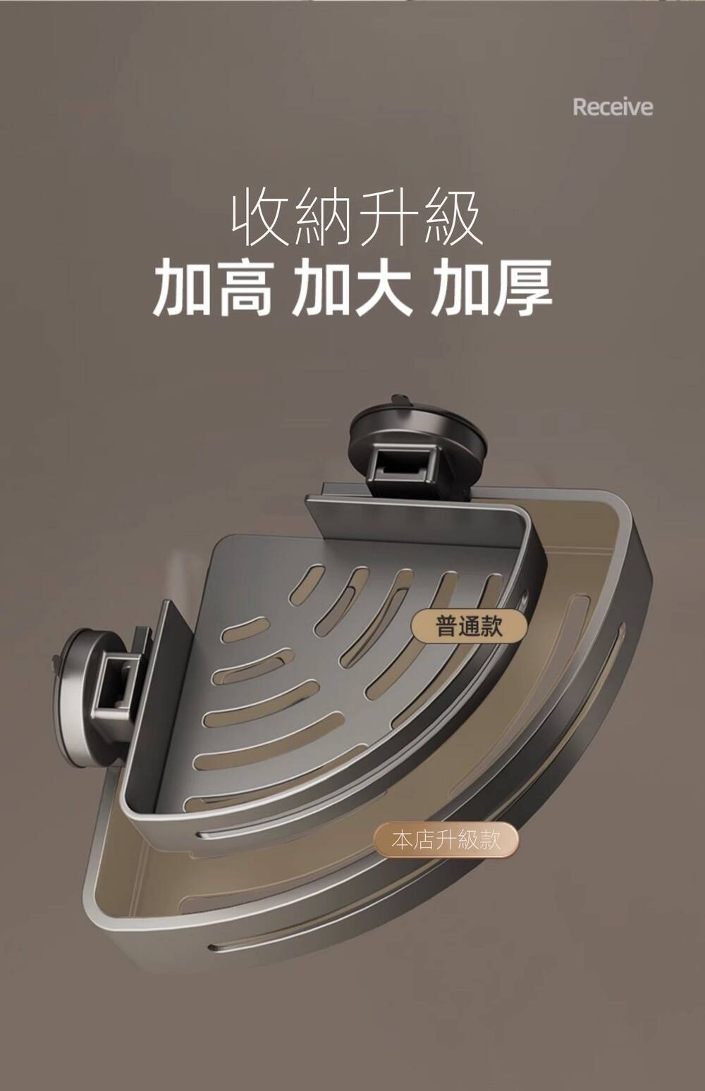 2分鐘前自帶吸盤,可隨時移動重復使用的置物架 免打孔廚房浴室衛生間三角置物架多用途壁掛收納架毛巾架 - 【超夯下殺】買一送二,共三入組 NT$998
