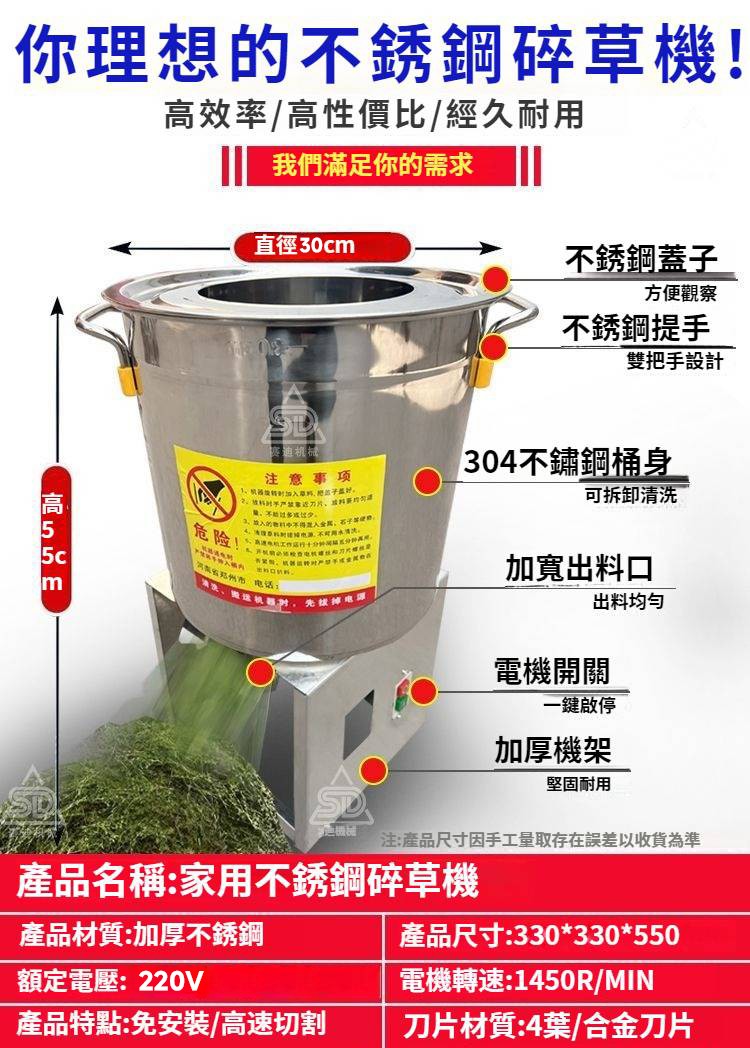 2分鐘前【養殖好幫手】多功能碎菜機,碎菜只需1秒,廠家直銷,貨到付款 量大優惠! - 600W不鏽鋼台式碎菜機--NT$2990