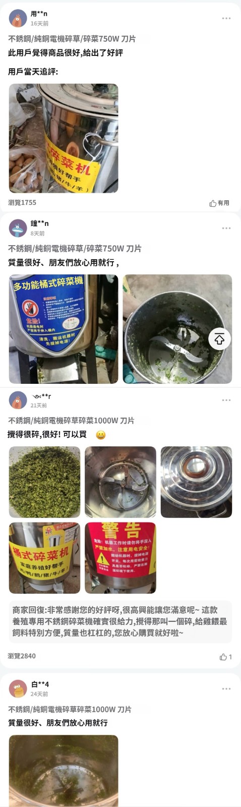 12分鐘前【養殖好幫手】多功能碎菜機,碎菜只需1秒,廠家直銷,貨到付款 量大優惠! - 塑料桶多功能碎菜機--NT$1990
